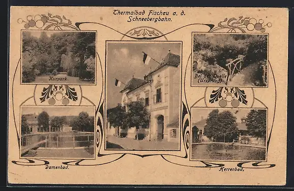 AK Fischau a. d. Schneebergbahn, Thermalbad, Kurpark, Damenbad