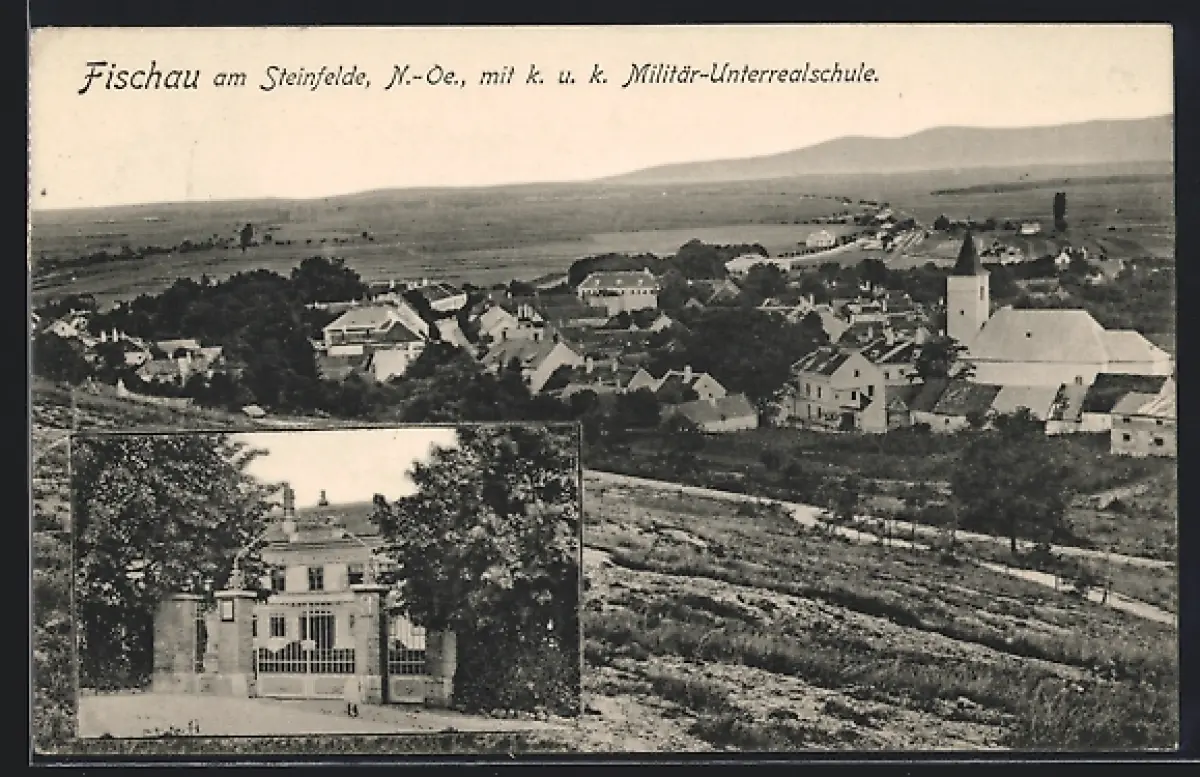 AK Fischau am Steinfelde, Ortsansicht, Blick auf die Militär-Unterrealschule