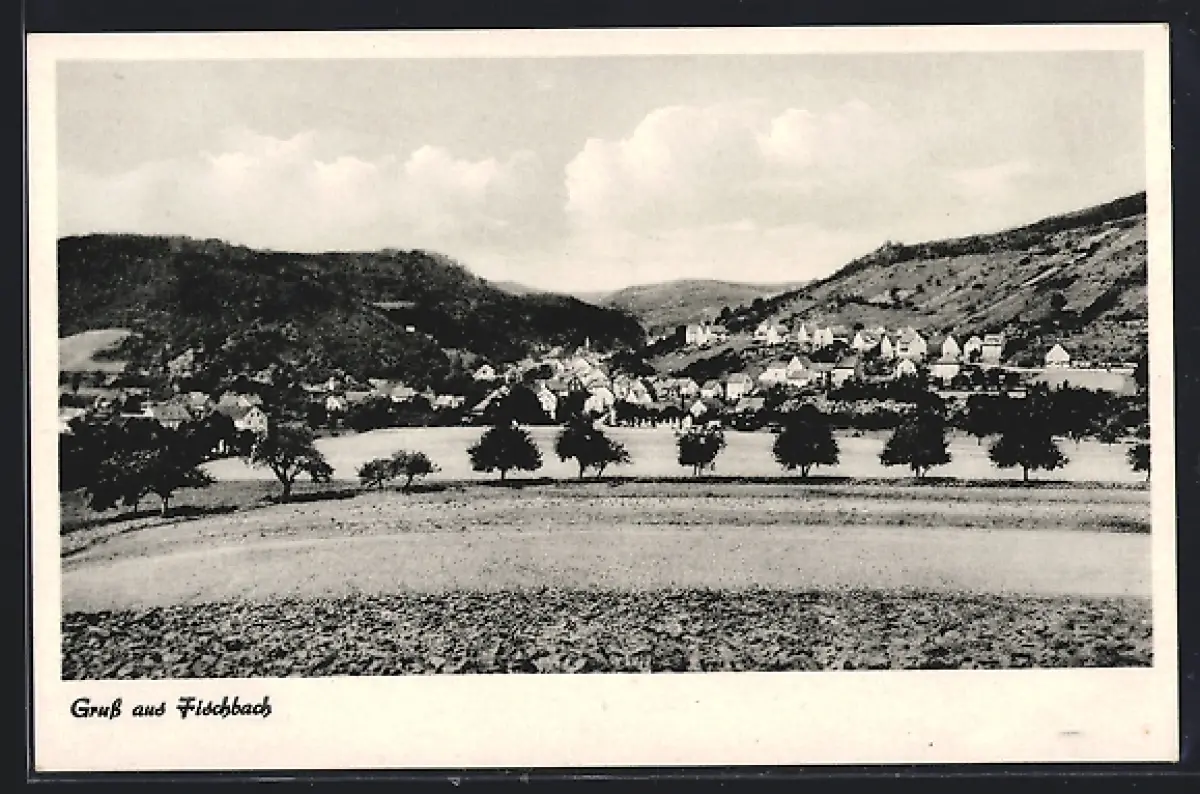 AK Fischbach / Nahe, Ortsansicht, Hügel, Felder