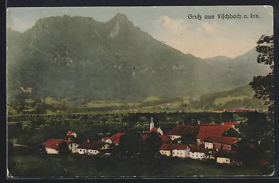 AK Fischbach a. Inn, Ortsansicht mit Gipfelpanorama aus der Vogelschau