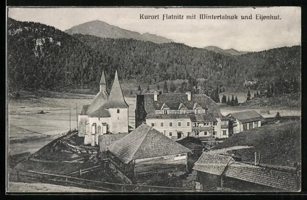 AK Flattnitz, Ortsansicht mit Wintertalnok und Eisenhut