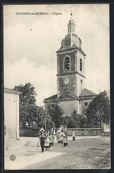 AK Flavigny-sur-Moselle, L`Église et procession devant l`église