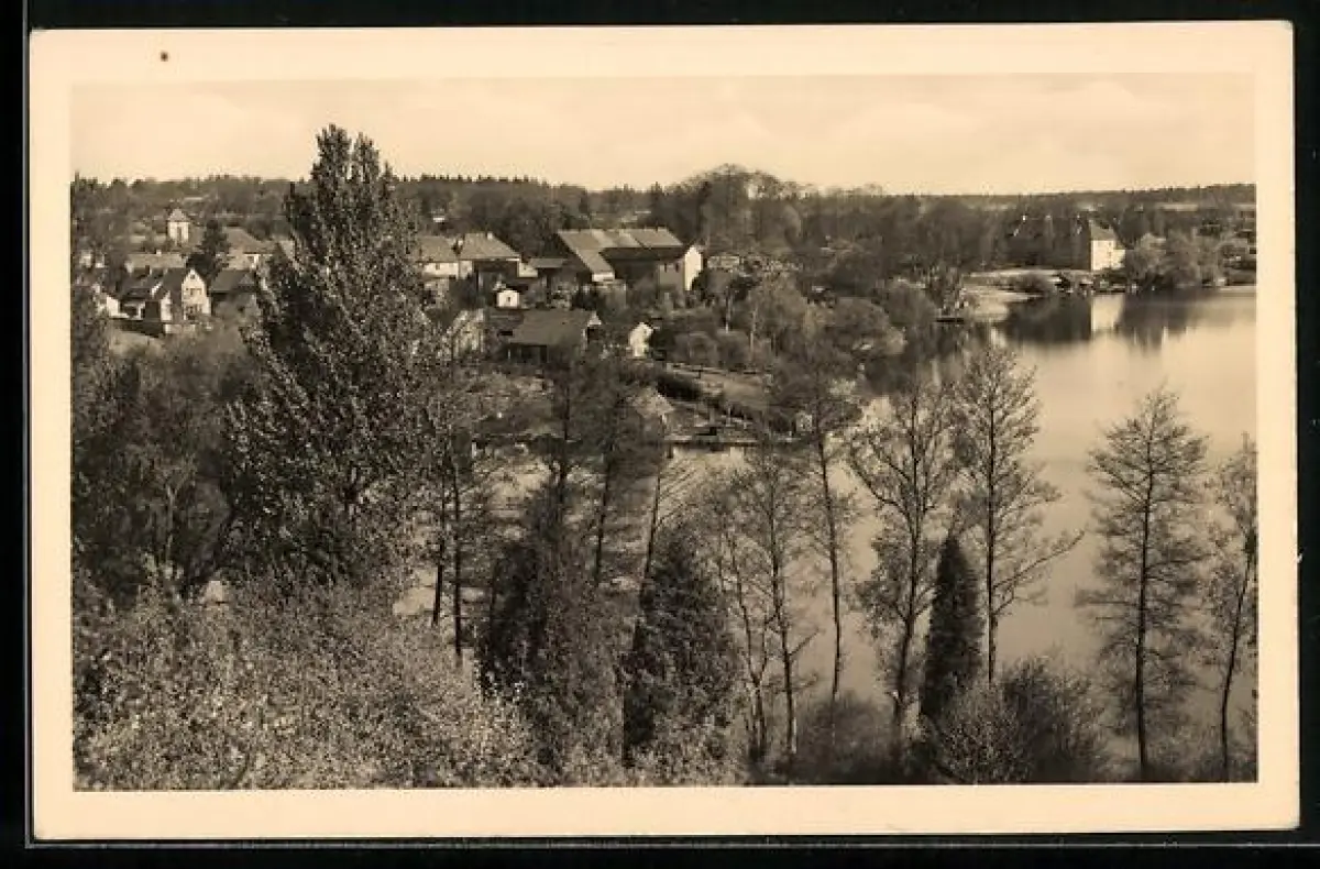 AK Flecken Zechlin über Rheinsberg, Ortsansicht mit See