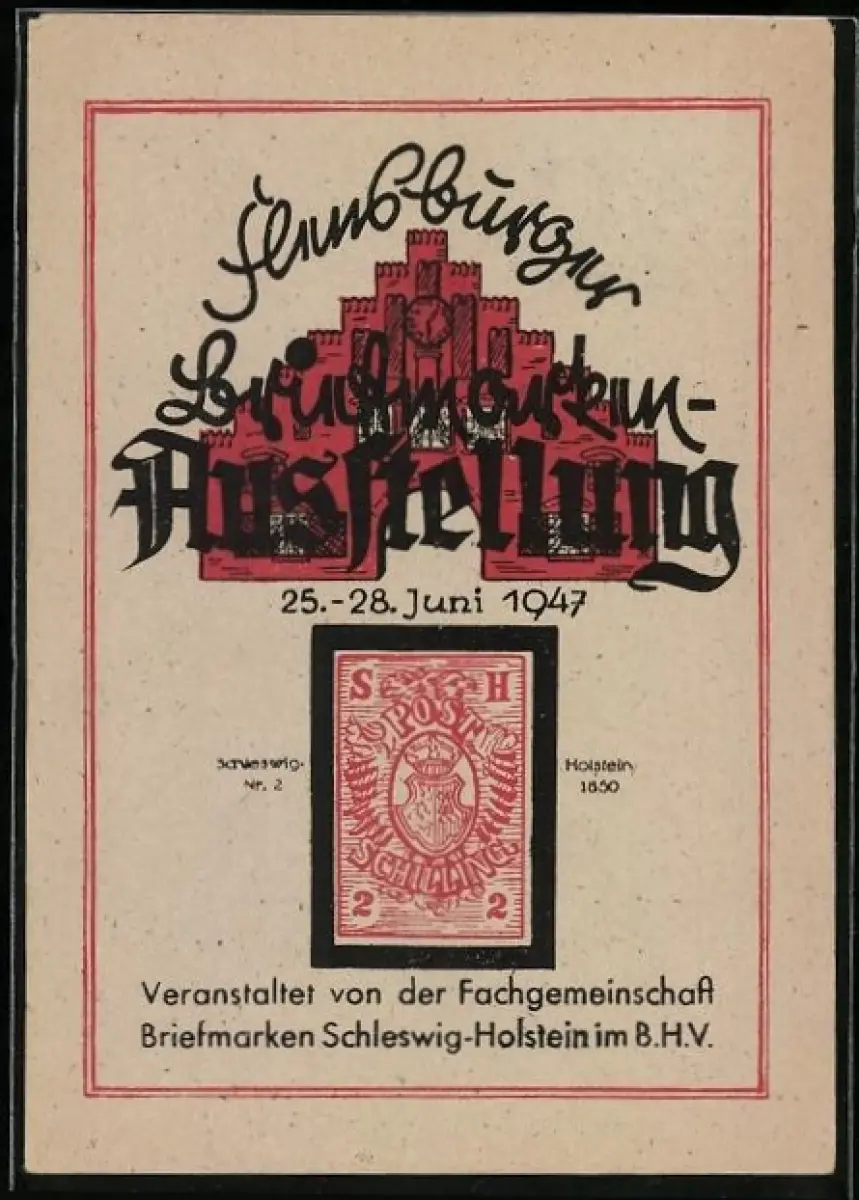 AK Flensburg, Briefmarken-Ausstellung 1947, 2 Schiling