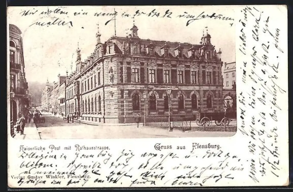 AK Flensburg, Kaiserliche Post, Rathausstrasse