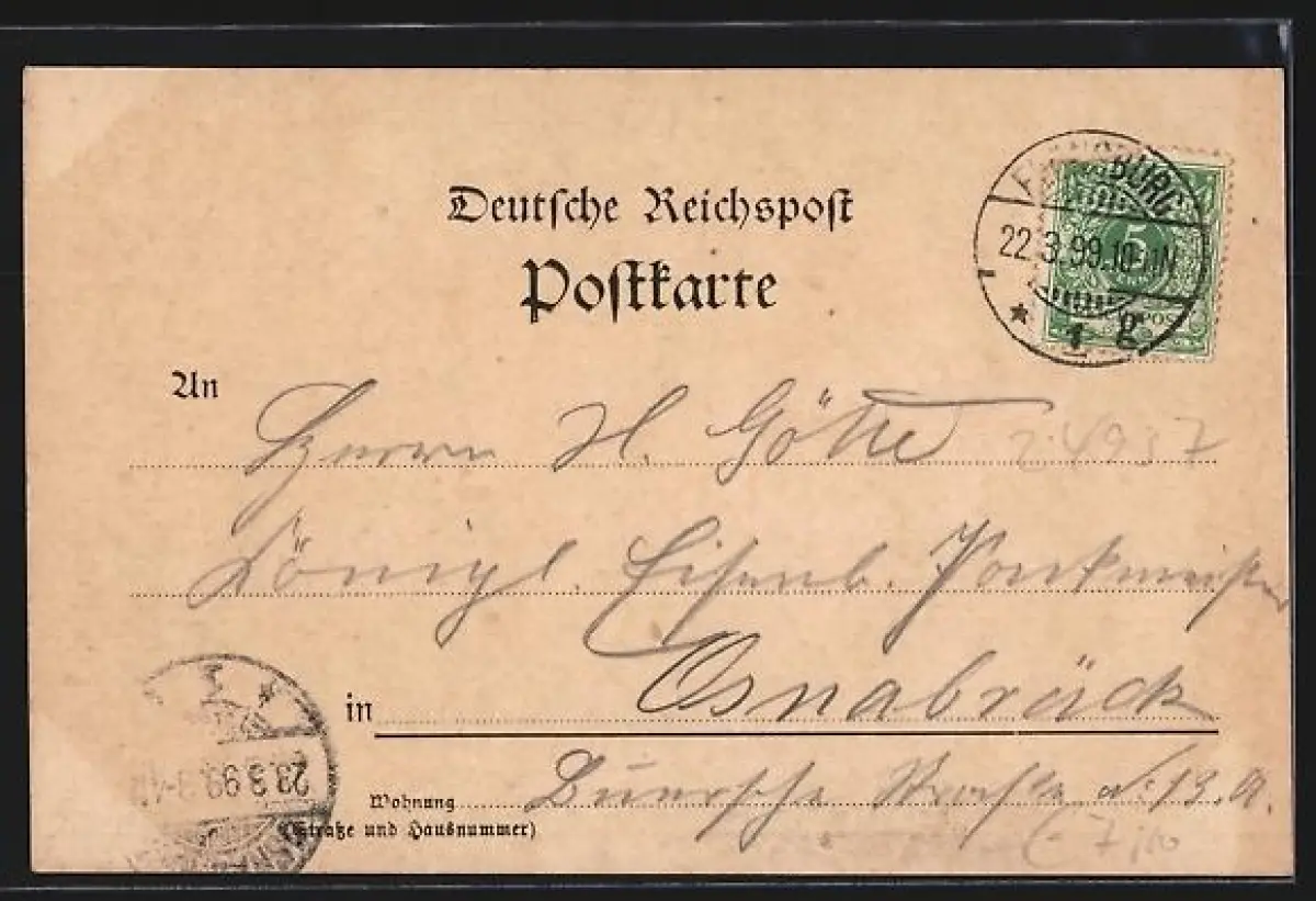 alte Ansichtskarte, gelaufen 1899, guter Zustand