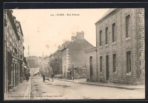 AK Flers, Rue Schnetz, Strassenpartie