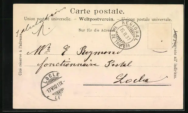 alte Ansichtskarte, gelaufen 1901, Briefmarke entfernt, guter Zustand