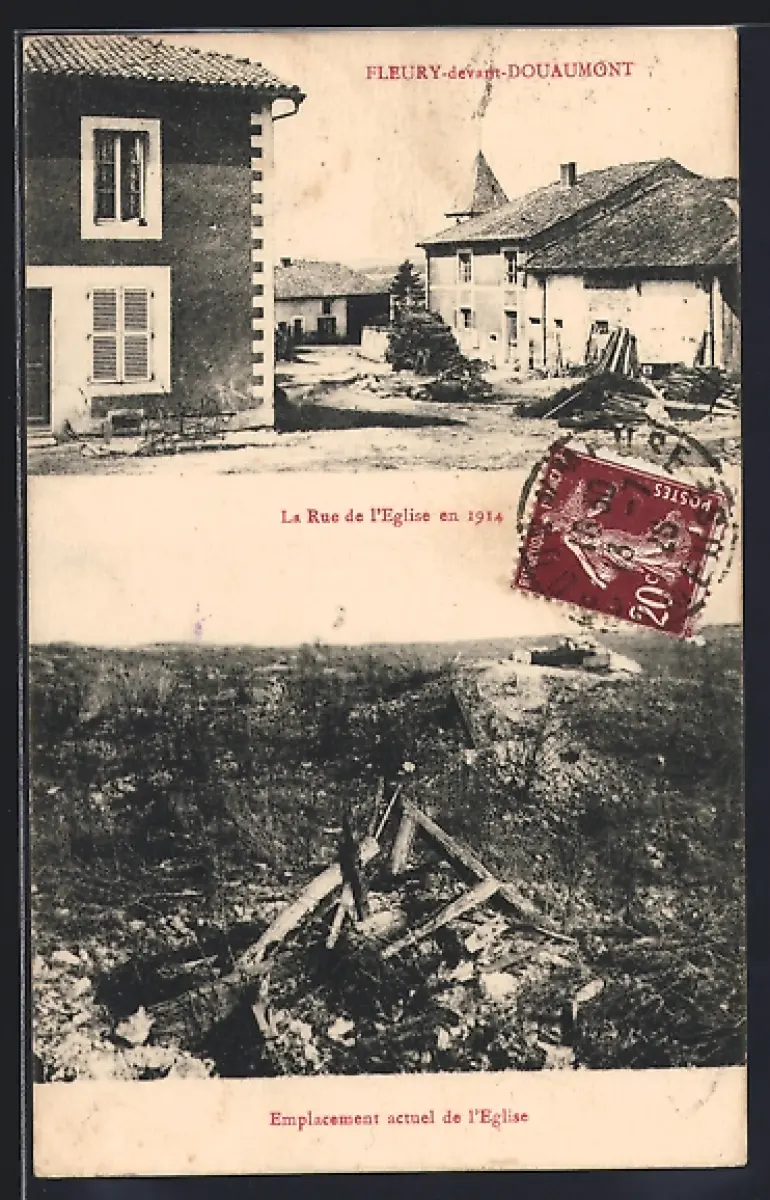 AK Fleury-devant-Douaumont, La rue de l`Eglise en 1914, Emplacement actuel de l`Eglise