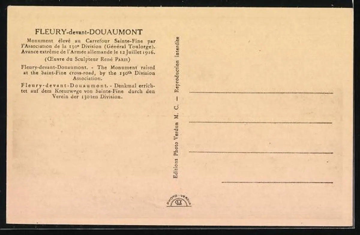 AK Fleury-devant-Douaumont, Monument au Carrefour Sainte-Fine par l`Association de la 132e Division