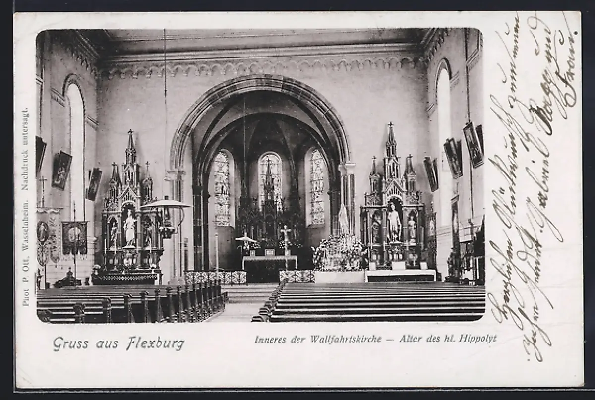 AK Flexburg, Inneres der Wallfahrtskirche, Altar des hl. Hippolyt