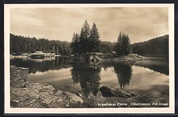 AK Flims, Waldhaus, Caumasee mit Insel