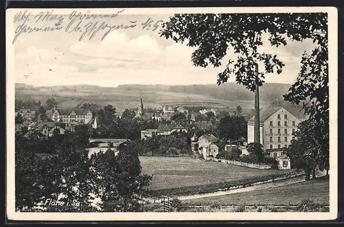 AK Flöha i. Sa., Ortspanorama mit Kirche