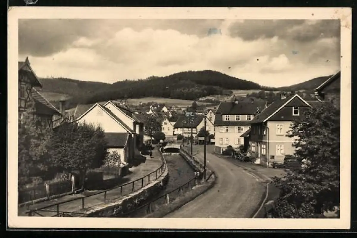 AK Floh b. Schmalkalden, Ortsansicht mit Bach und Wohnhäusern