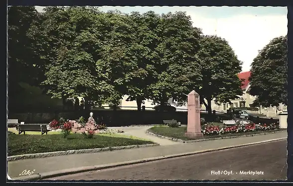 AK Floss /Opf., Marktplatz mit Denkmal