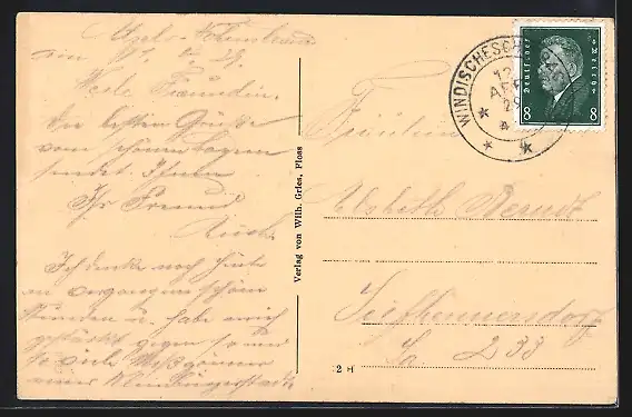 alte Ansichtskarte, gelaufen 1929, Abriebspur unten re., guter Zustand