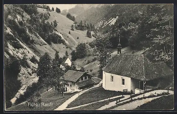 AK Flühli-Ranft, Kirche mit Blick ins Tal