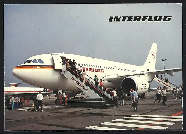 AK Flugzeug A 310 der Interflug auf der Startbahn
