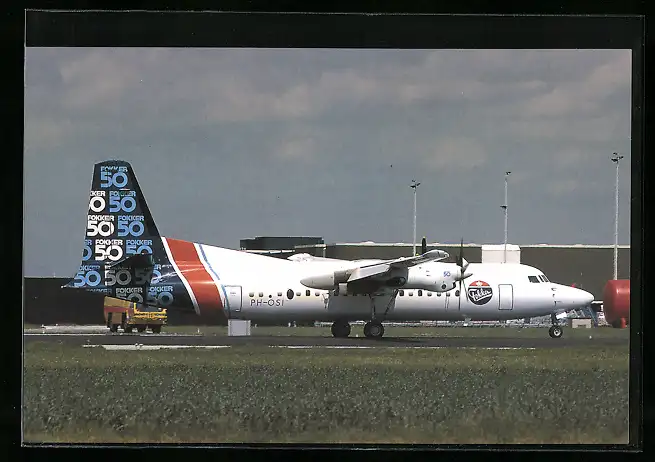 AK Flugzeug Fokker F 50 auf der Rollbahn