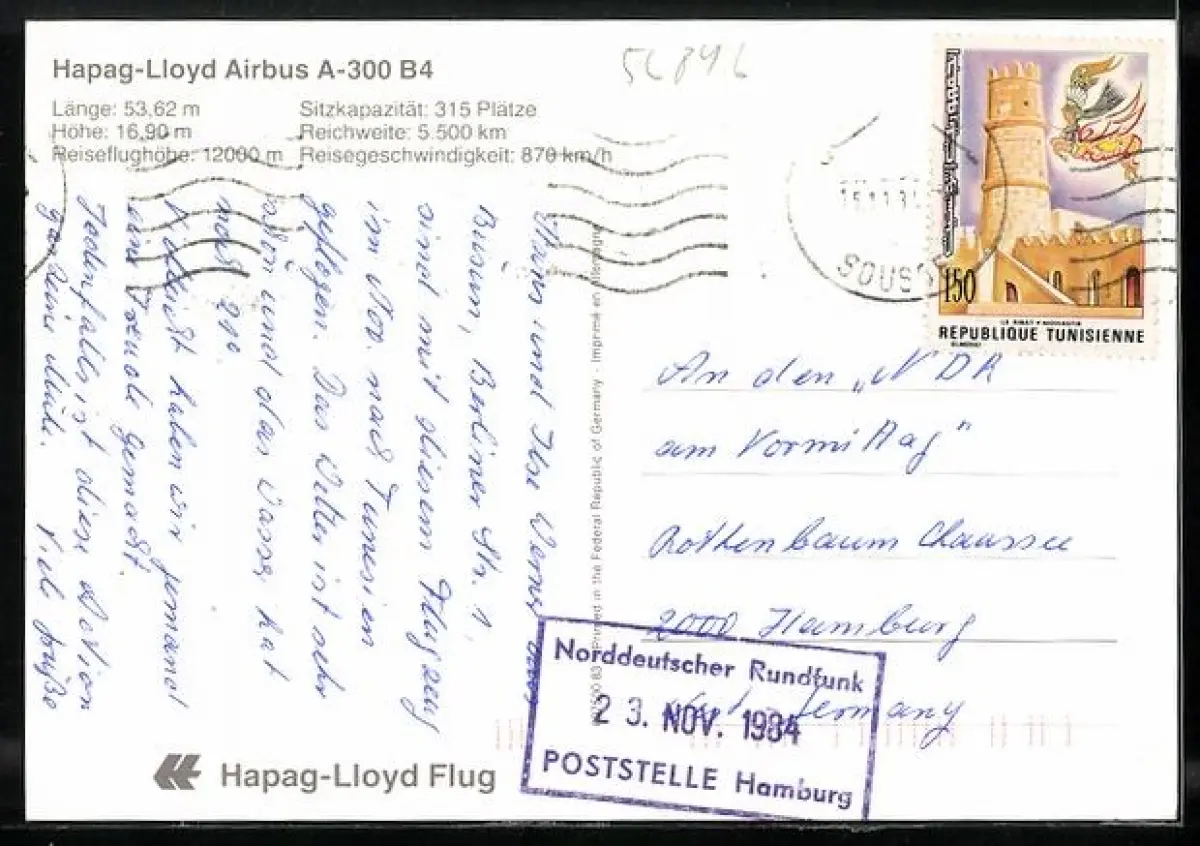 AK Flugzeug Hapag-Lloyd Airbus A-300 B4 im Flug