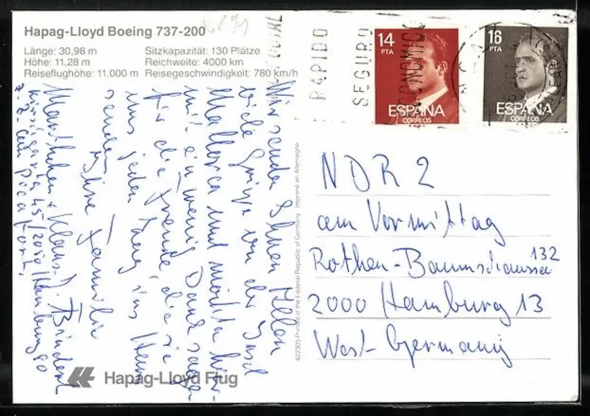 AK Flugzeug, Hapag-Lloyd Boeing 737-200 in der Luft