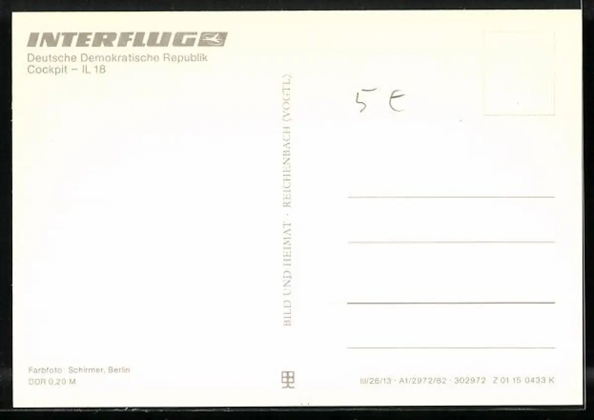 AK Flugzeug IL 18 der Interflug, Blick ins Cockpit