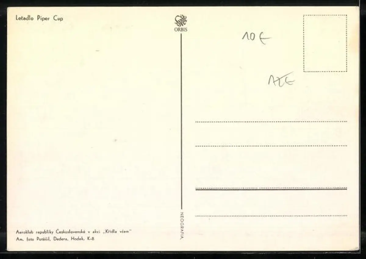 AK Flugzeug vom Typ Lietadlo Piper Cub auf der Piste