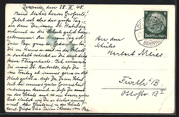 gelaufen 1940, Eckknicke li. unten, guter Zustand