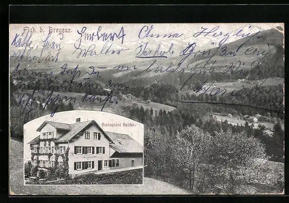 AK Fluh b. Bregenz, Restaurant Halder, Panoramablick von einer Anhöhe