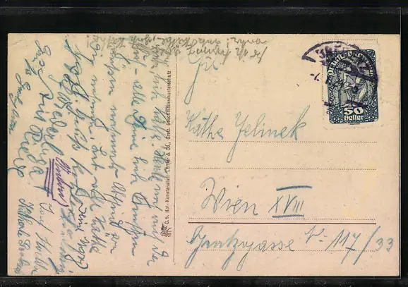 alte Ansichtskarte, gelaufen 1921, Eckknick re. oben, Bugspur li. oben, guter Zustand