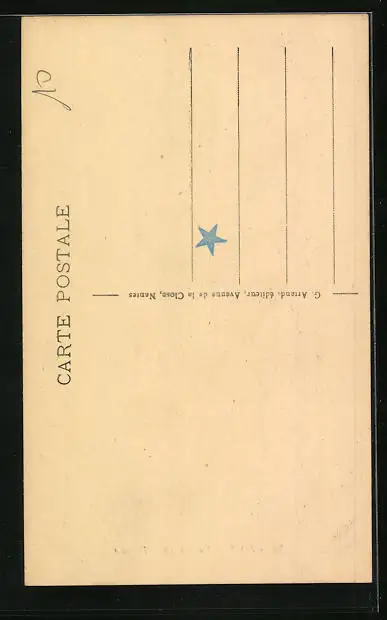 Personenbezogene Daten auf der Rückseite der Karte wurden durch blauen Textmarker unkenntlich gemacht. Die blauen Stellen sind auf die Vorderseite durchgeweicht und wirken sich negativ auf das Postkartenfoto aus