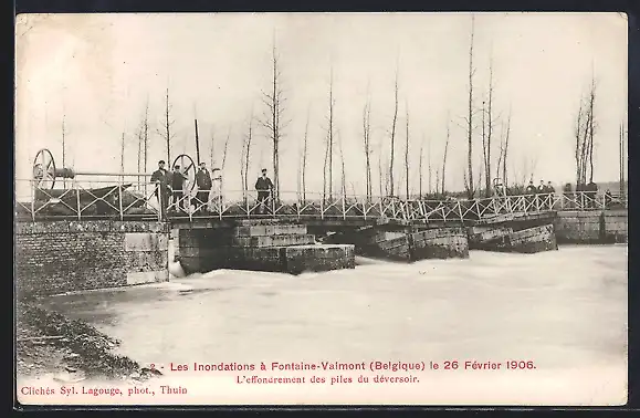AK Fontaine-Valmont, Les inondations le 26 Février 1906, L`effondrement des piles du deversoir