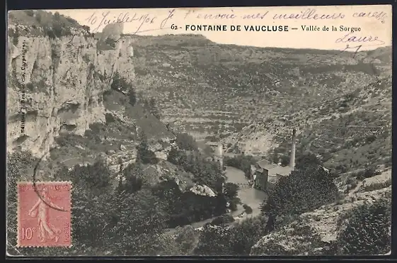 AK Fontaine de Vaucluse, Vallée de la Sorgue et ses falaises majestueuses
