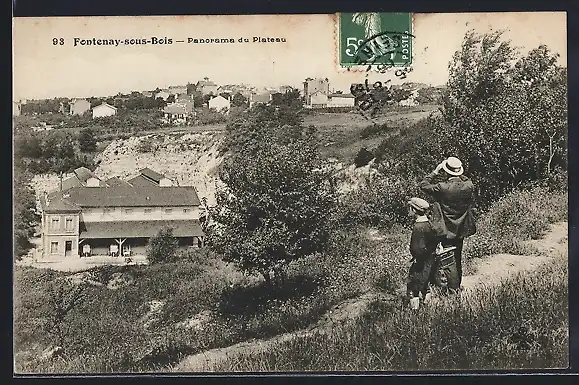 AK Fontenay-sous-Bois, Panorama du plateau avec spectateurs admirant la vue