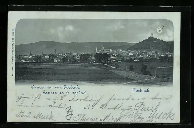 AK Forbach, Panorama mit Kirche aus der Vogelschau