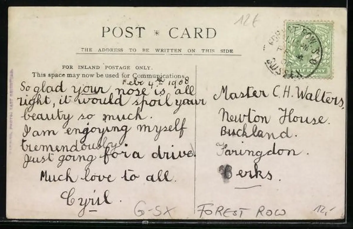 gelaufen 1908, Eckknick unten links, guter Zustand