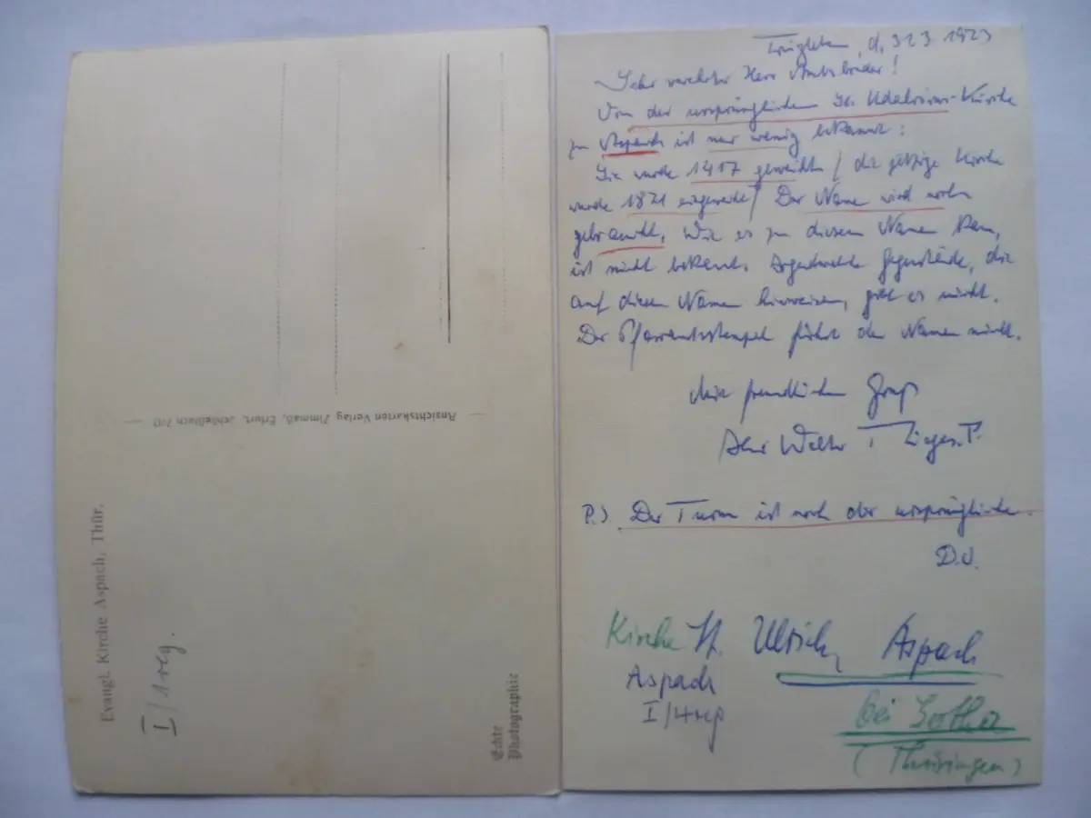 AK + Foto Aspach Gotha Kirche