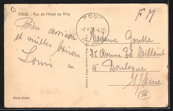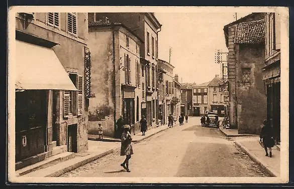 AK Foug, Rue de l`Hôtel de Ville animée avec passants et bâtiments anciens