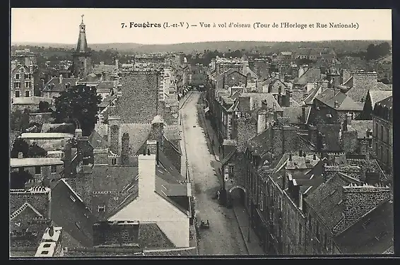 AK Fougères, Vue à vol d`oiseau (Tour de l`Horloge et Rue Nationale)