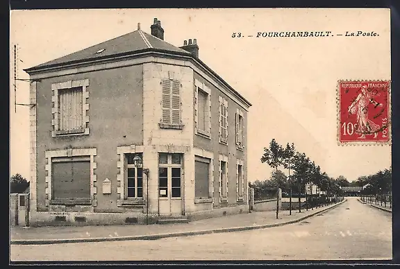 AK Fourchambault, La Poste et rue adjacente