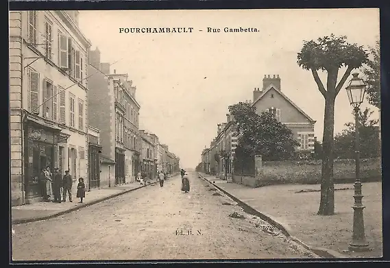 AK Fourchambault, Rue Gambetta avec passants et architecture urbaine