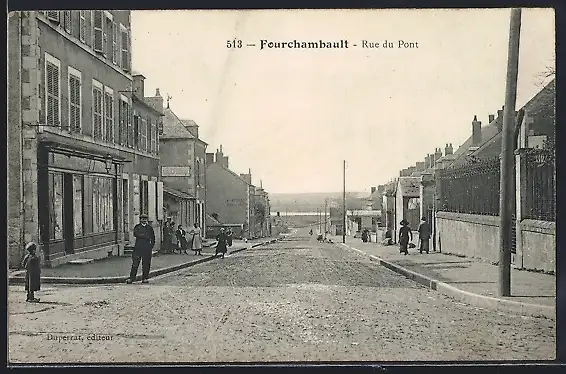 AK Fourchambault, Rue du Pont animée avec passants et bâtiments