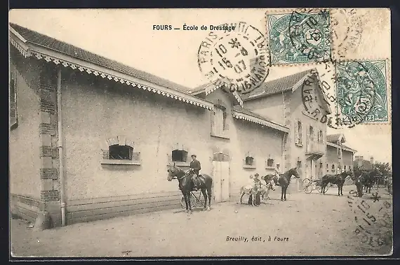 AK Fours, École de Dressage avec cavaliers devant le bâtiment