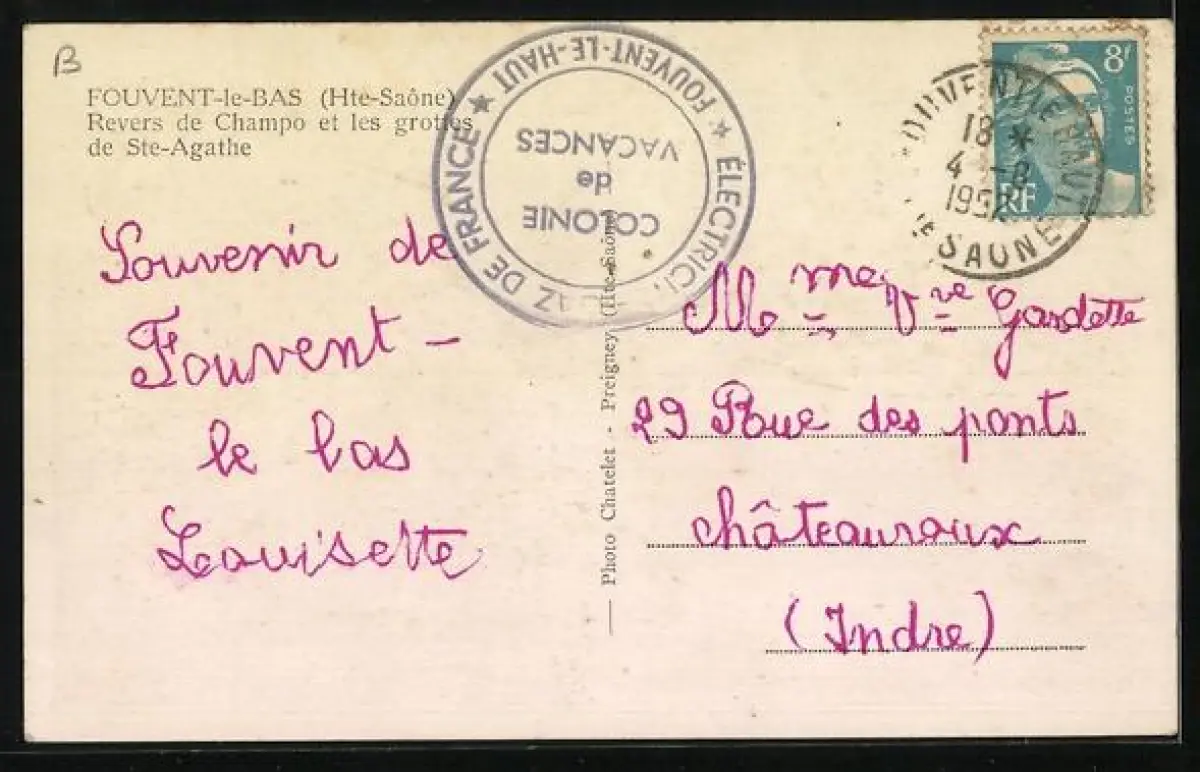 AK Fouvent-le-Bas /Hte-Saône, Revers de Champo et les grottes de Ste-Agathe