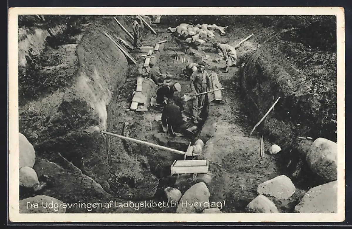AK Fra Udgravningen af Ladbyskibet, Skibsgrav fra Vikingetiden