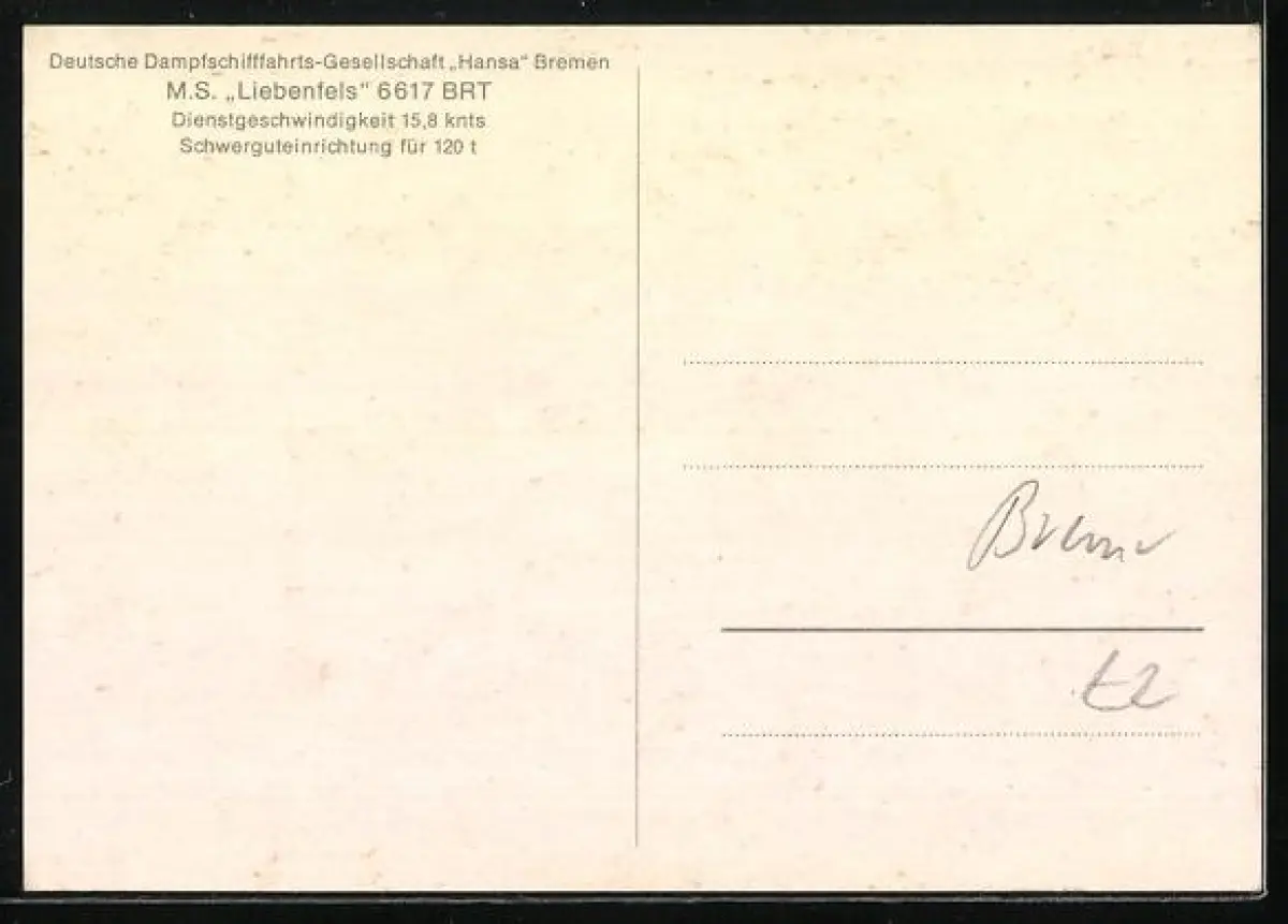 AK Frachtschiff M.S. Liebenfels, Deutsche Dampfschifffahrts-Gesellschaft Hansa