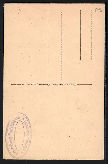 Personenbezogene Daten auf der Rückseite der Karte wurden durch blauen Textmarker unkenntlich gemacht. Die blauen Stellen sind auf die Vorderseite durchgeweicht und wirken sich negativ auf das Postkartenfoto aus