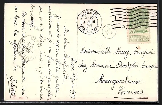 alte Ansichtskarte, gelaufen 1909, Stempelspur, guter Zustand