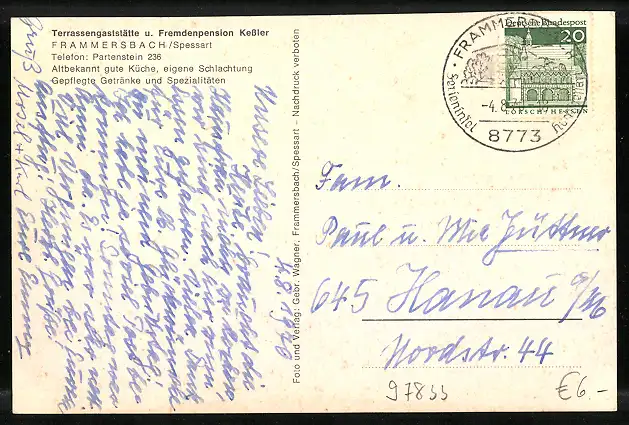 AK Frammersbach /Spessart, Terrassengaststätte und Fremdenpension Kessler