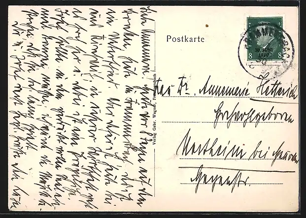 alte Ansichtskarte, gelaufen 1930, Einriss oben Mitte, guter Zustand